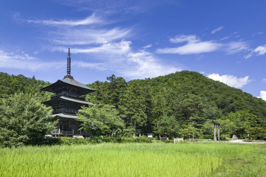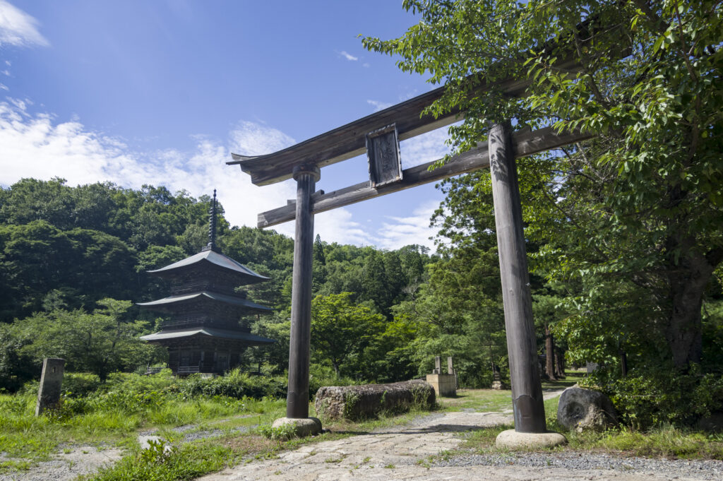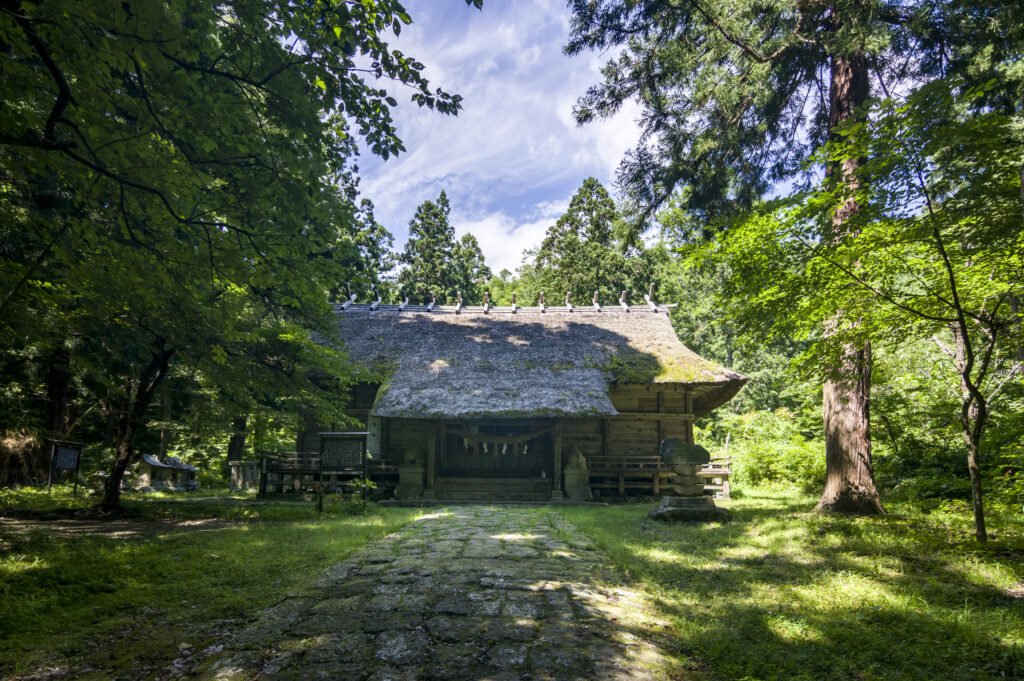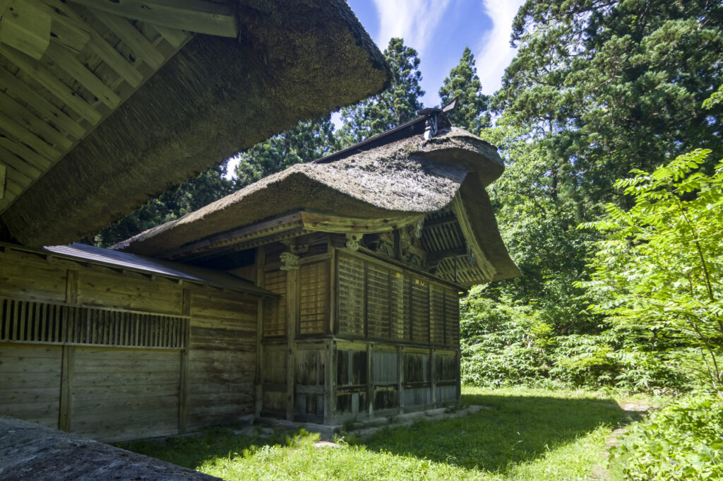 神社入口に立ってすぐに目に入る三重塔はもちろん、境内の舞楽殿、拝殿、本殿と続く茅葺き屋根も圧巻である。すぐ近くの道の駅目当ての方もぜひ忘れず参拝に訪れてもらいたい。