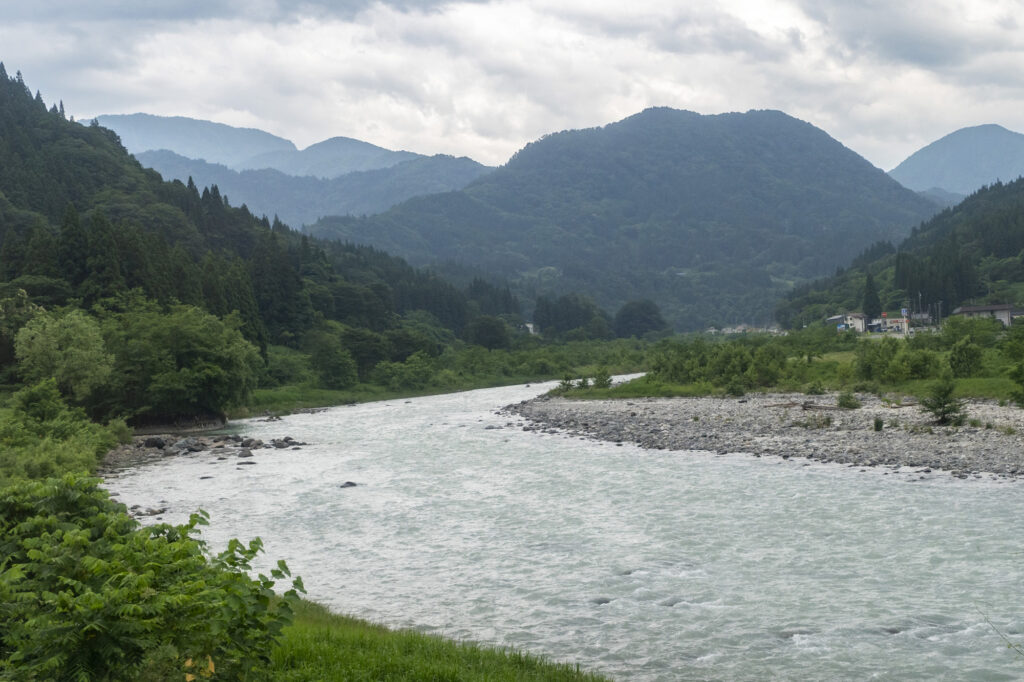 中心を流れる姫川は糸魚川まで流れ日本海へ